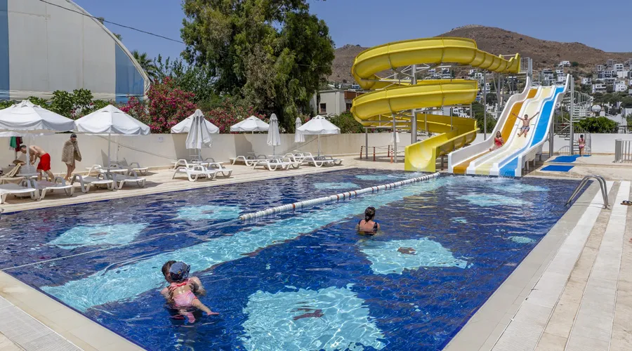 All Inclusive Holidays to Azure By Yelken is located in the Turgutreis region. Azure By Yelken attracts attention with its seaside location. Hotel has its own private sandy beach. It has its own pier with a 330 m long beach. You can have a pleasant holiday with 3 outdoor swimming pools. You can have pleasant moments doing water sports with banana, pedal boat, jet ski, catamaran, surfing and sailboat in our hotel.