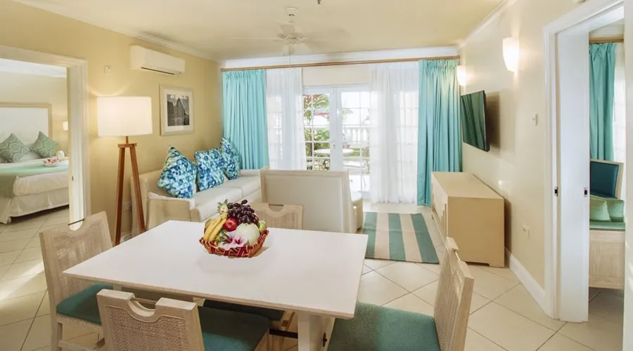 Open your doors directly to Reduit Beach, this two bedroom suite featuring a separate living room and bedroom, full kitchen and dining area, powder room and private furnished patio.