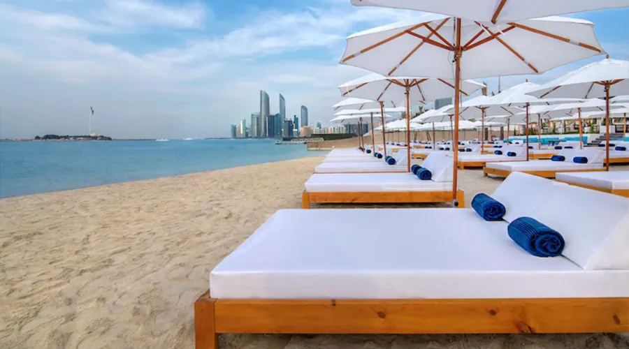 All Inclusive Holidays Radisson Blu Abu Dhabi, 5-nights, stay at the 5-star Hotel & Resort in Abu Dhabi Corniche popular with sun loungers for a relaxing holiday with a sandy beach and shopping. Summer Holidays with evening flight Direct to Abu Dhabi from London Heathrow (LHR) with Etihad Airways Economy class